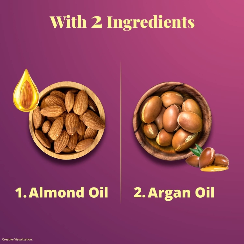 Bajaj Almond Drops Almond + Argan oil protects the hair against cumulative damage from Chemical treatments, Heat styling and Pollution
