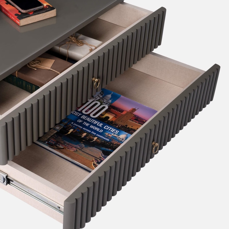 Charlotte Glass Top Bedside Table in Grey Colour