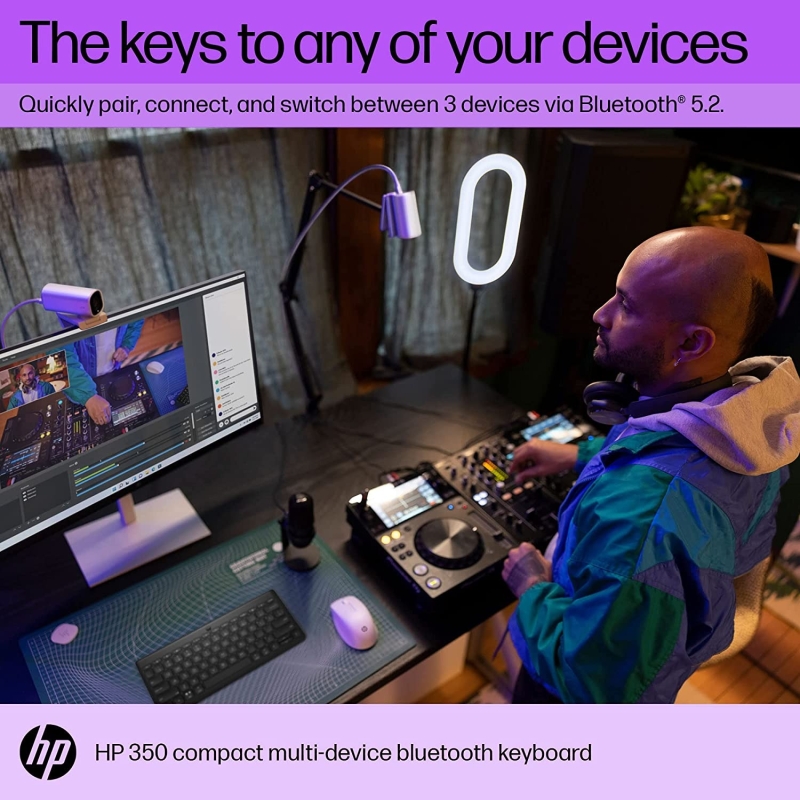 لوحة مفاتيح HP 350 صغيرة الحجم متعددة الأجهزة بتقنية Bluetooth