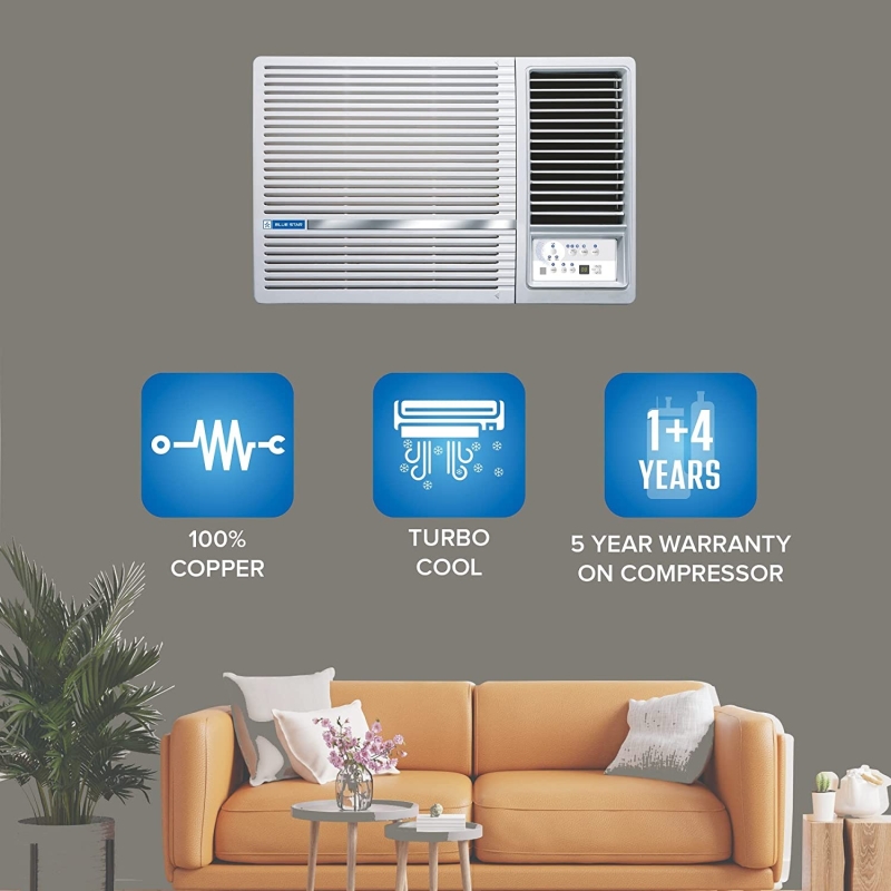 • Copper Condenser: Blue Star Window ACs offer unsurpassed cooling thanks to its highly efficient rotary compressor and are fully loaded with features such as sleep mode and antifreeze thermostat.