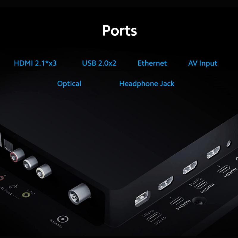 Connectivity: Dual-band Wi-Fi | Bluetooth 5.0 | 3 HDMI ports to connect latest gaming consoles, set-top boxes, Blu-ray Players | 2 USB ports to connect hard drives and other USB devices | eARC - Dolby Atmos Passthrough eARC HDMI port | Optical Port