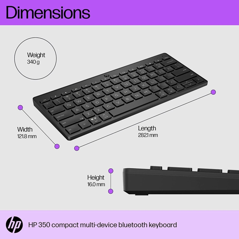 لوحة مفاتيح HP 350 صغيرة الحجم متعددة الأجهزة بتقنية Bluetooth