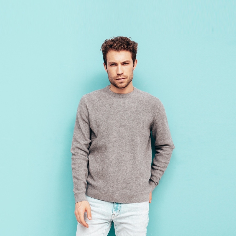 سويت شيرت رمادي صلب بياقة مستديرة