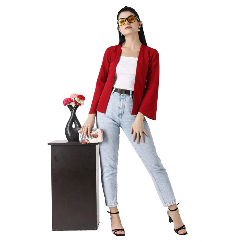 • Style Type : Maroon Open front Blazer